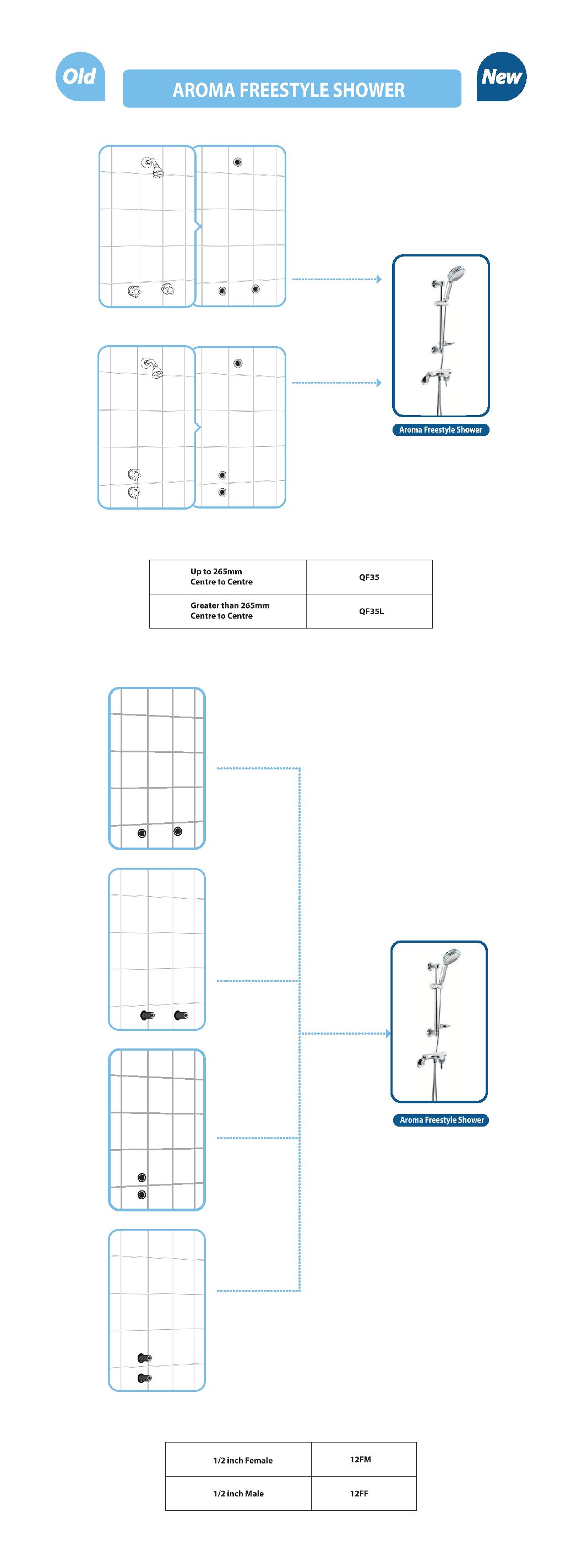 - Covers all distances between the two tap handles up to 265mm with QF35/12FM/12FF & 315mm with QF35L