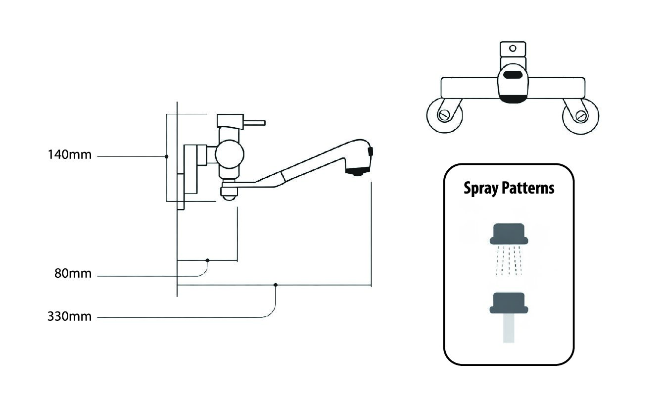 - Replaces wall-mounted bath/laundry/kitchen taps